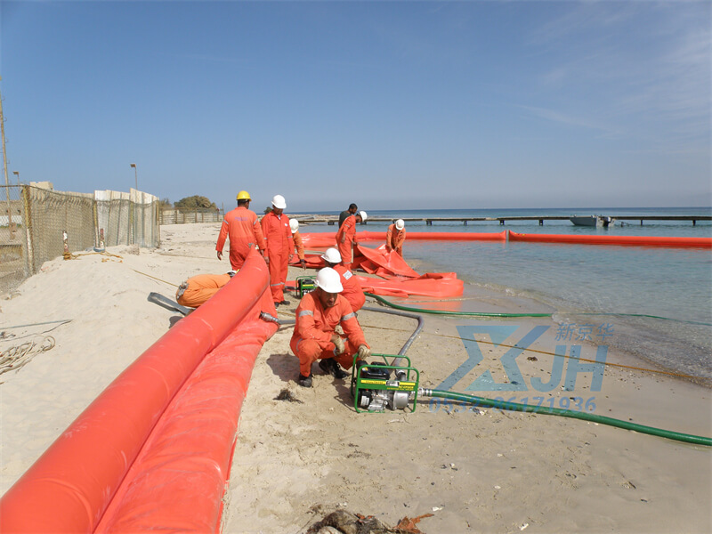圍油欄的氣室和注水室分別用專(zhuān)用充氣機(jī)和專(zhuān)用水泵充氣或注水。